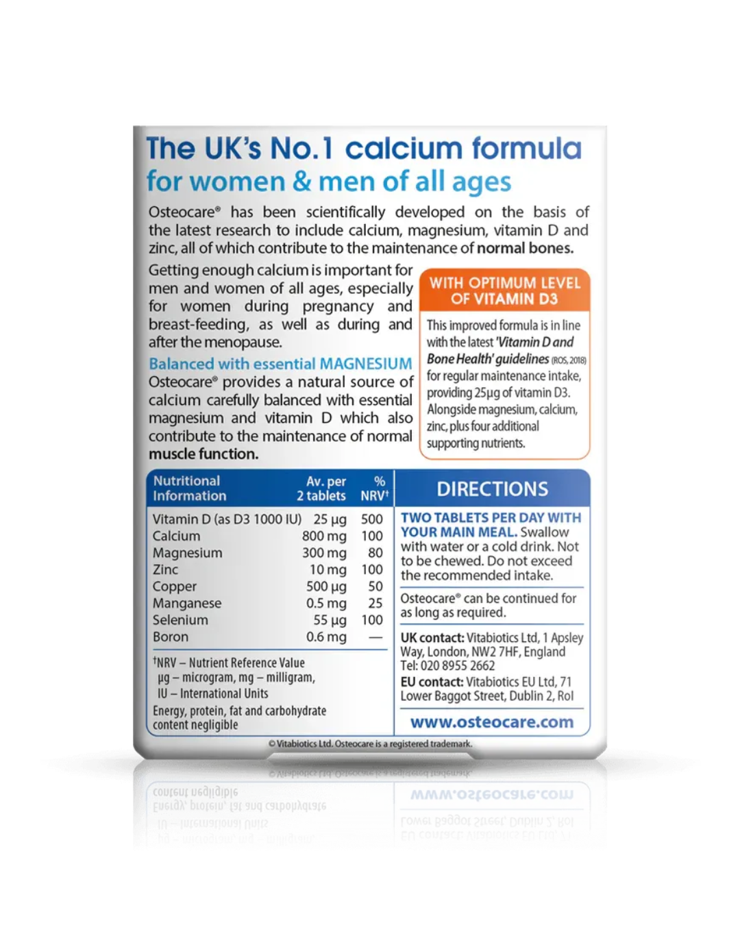 Osteocare Tablets contient une forte concentration du calcium